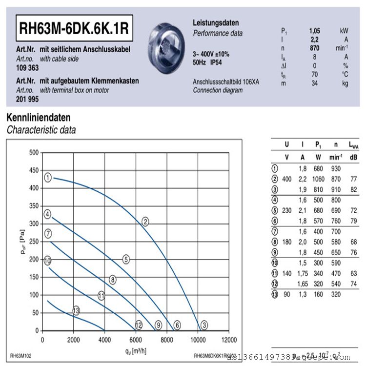 施乐百制冷通风离心风机型号RH63M-VDK.7Q.1R